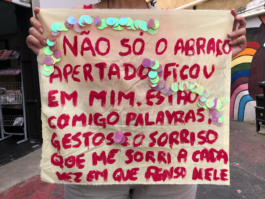 Colcha de retalhos foi confeccionada para Manifestação do Dia Internacional de Luta contra a Aids em 30/11/2001. Cada pedaço de tecido representa uma pessoa que faleceu vítima da aids. Créditos: Acervo GIV.